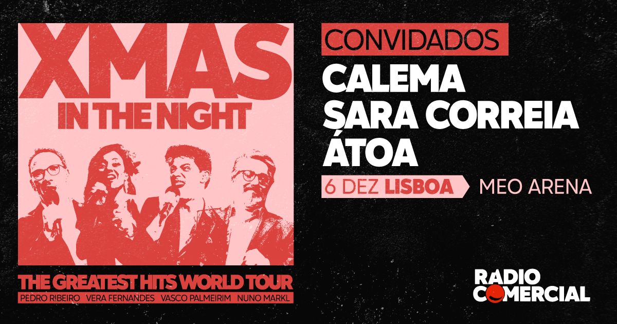 O “Xmas in the Night 2025 – The Greatest Hits World Tour” acontece no dia 6 de dezembro, às 21h30, no MEO Arena, e promete ser uma verdadeira celebração dos melhores momentos das Manhãs da Comercial, com Vasco Palmeirim, Vera Fernandes, Nuno Markl, Pedro Ribeiro e Manuel Cardoso.